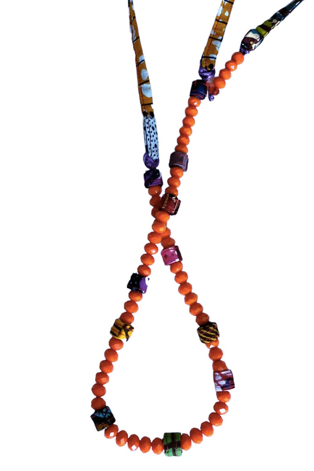 Tissu en wax, perles de céramique 4 coloris au choix: Noir, Orange, Bleu, vert, Orange